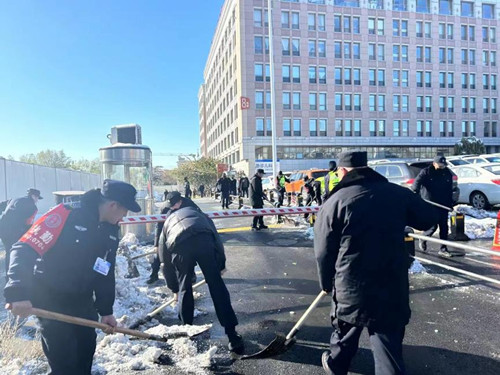 雪情就是命令,職責就是使命。為保障醫(yī)院各區(qū)域工作安全有序開展,全體保安員發(fā)揚保安集團吃苦耐勞、頑強拼搏的戰(zhàn)斗精神,團結協(xié)作,不懼嚴寒,齊心協(xié)力,配合默契,鏟冰除雪,干得熱火朝天。雖然風雪交加,打濕了他們的衣帽,但醫(yī)院各主要入口、主干道等重點工作區(qū)域的積雪得到了及時有效的清理,保障了醫(yī)院工作安全有序開展,也為醫(yī)患出行提供了安全保障,保安員們的熱情和團結的力量讓這個寒冷的冬日變得格外溫暖。
